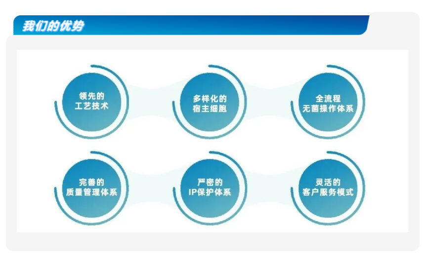 由于复杂的技术机制、高门槛的工艺开发和大规模生产、严苛的法规监管要求、有限的产业化经验,使得CGT产品相比传统制药更加依赖CDMO。高腾生物顺应产业发展规律,依托汉腾生物已成熟的大分子CDMO服务平台,致力打造国际化一站式CGT CDMO平台,专注于提供蛋白、质粒、慢病毒、腺病毒、AAV、免疫细胞、干细胞等生产服务,包括工艺和分析方法开发和验证、方法学转移、小试、中试、GMP/星空官方网页版、IND注册申报等一站式专业化服务, 竭诚为客户提供生物类药物药理/毒理批、临床试验用药及上市后星空官方网页版。