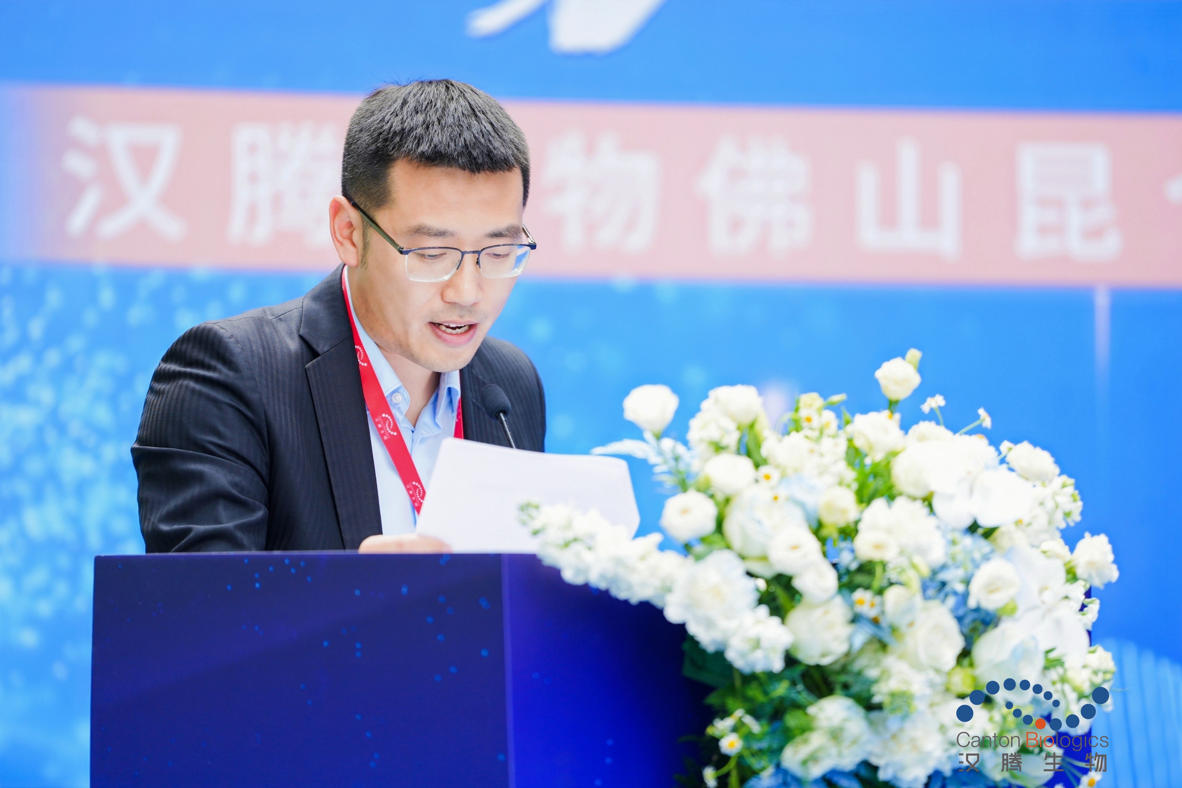 随后,佛山三龙湾科技城管理委员会副主任朱锡雄上台发表致辞,他表示作为中国的先进制造业基地和经济发达地区,佛山市在生物能源、食品、畜牧业、生物基材料、医药、绿色化妆品原料生产等方面,具有良好的产业基础,布局前沿技术并实现转化落地,是佛山高质量发展的题中之义。汉腾生物作为一家优秀的高新技术企业,近年来蓬勃发展,对于佛山市经济的发展,创新技术的推动和人才的聚集起到了至关重要的作用,未来,佛山市政府期待与更多像汉腾生物一样的优秀企业携手并肩,共同推动科技创新、促进经济发展、增进民生福祉。