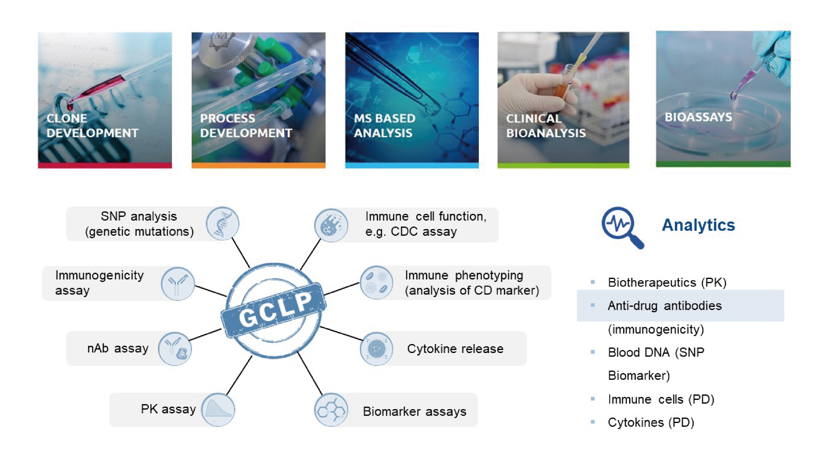 汉腾生物拥有全流程全方位的生物药大分子分析检测平台,完善的质量保证体系,完全依从相关法规,保证操作合规性及数据的完整性,可支持产品表征研究、了解分子的关键质量属性,制定可靠的质量控制策略等。我们时刻关注最新的法规政策,不断升级技术配备,以便更快、更好、更全地为客户提供一站式的分析解决方案。涵盖单抗、双抗、重组/融合蛋白、蛋白疫苗、mRNA疫苗、AAV 载体、质粒、重组/合成多肽、核酸药物、ADCs等分析研究。